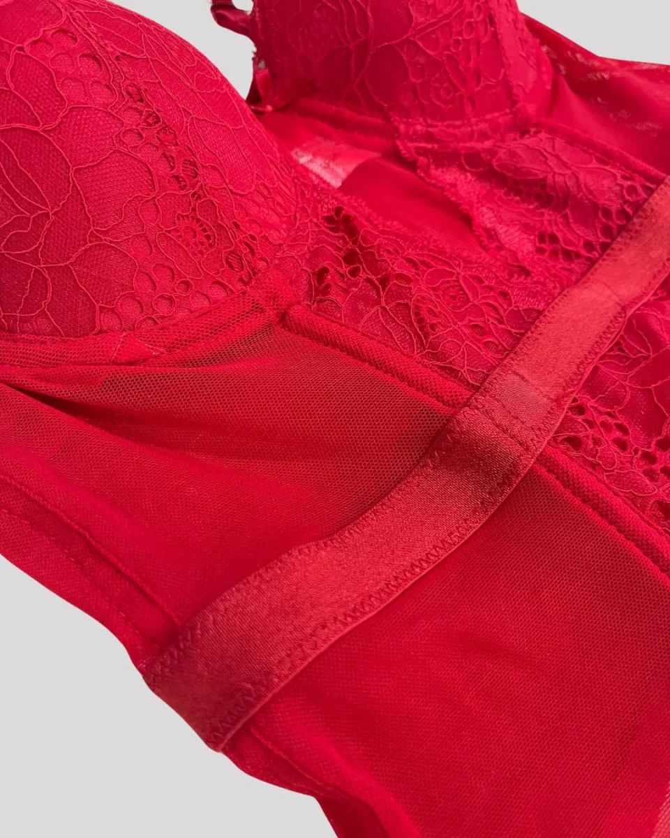 Un coordinato di lingerie audace ed elegante, perfetto per esaltare le forme e aggiungere un tocco di mistero al tuo look notturno.