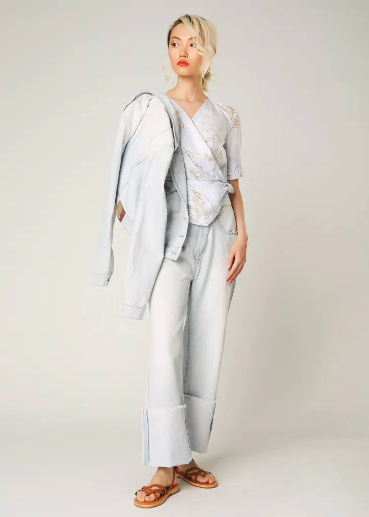 Alessia Santi Camicia Kimono Celeste