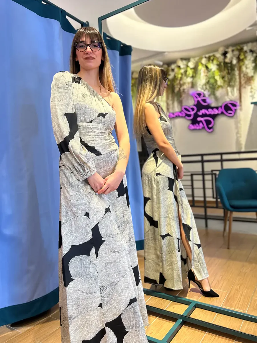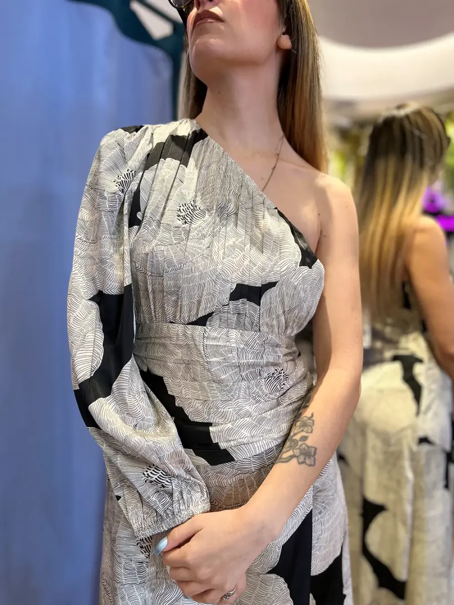 Anonyme Designers Abito Lungo Monospalla Fantasia Nera