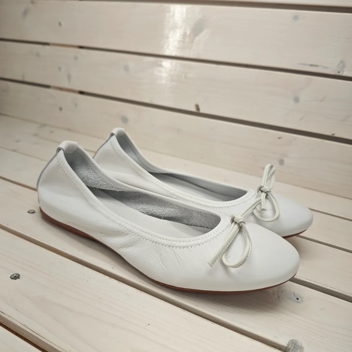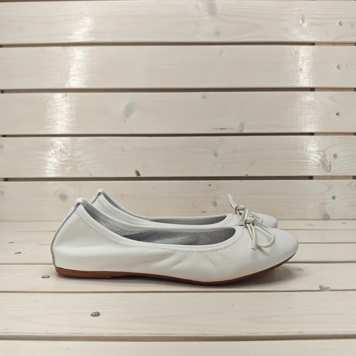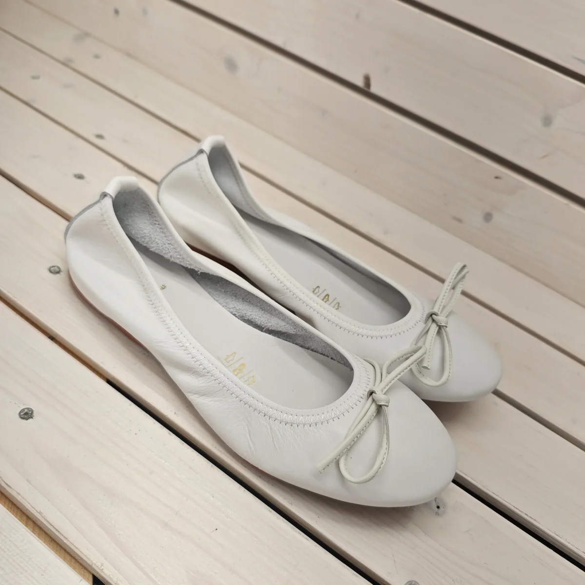 Ballerina in vera pelle con rialzo sotto al tallone e morbidissimo elastico sulla scollatura calzata regolare prodotta in Italia da maestri artigiani