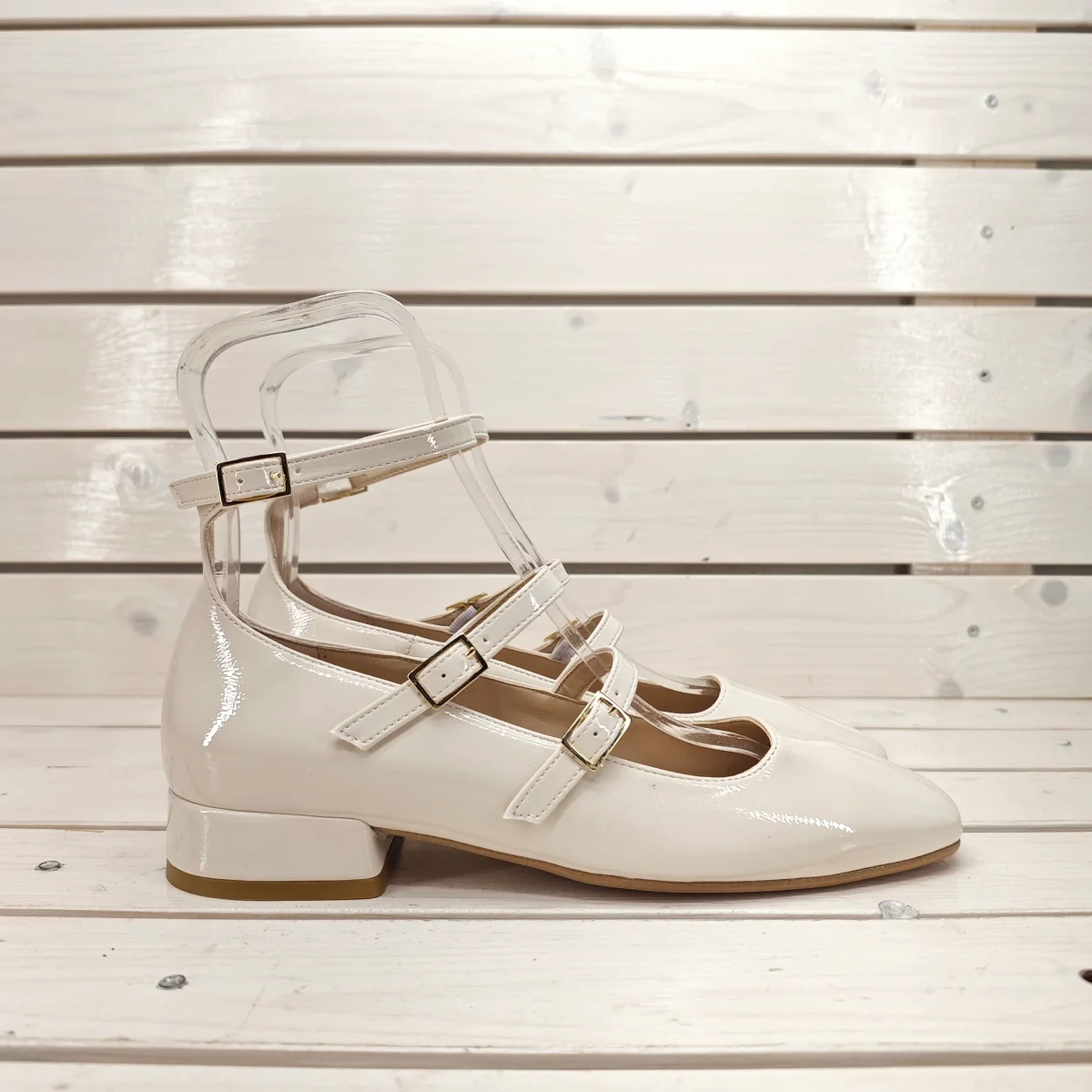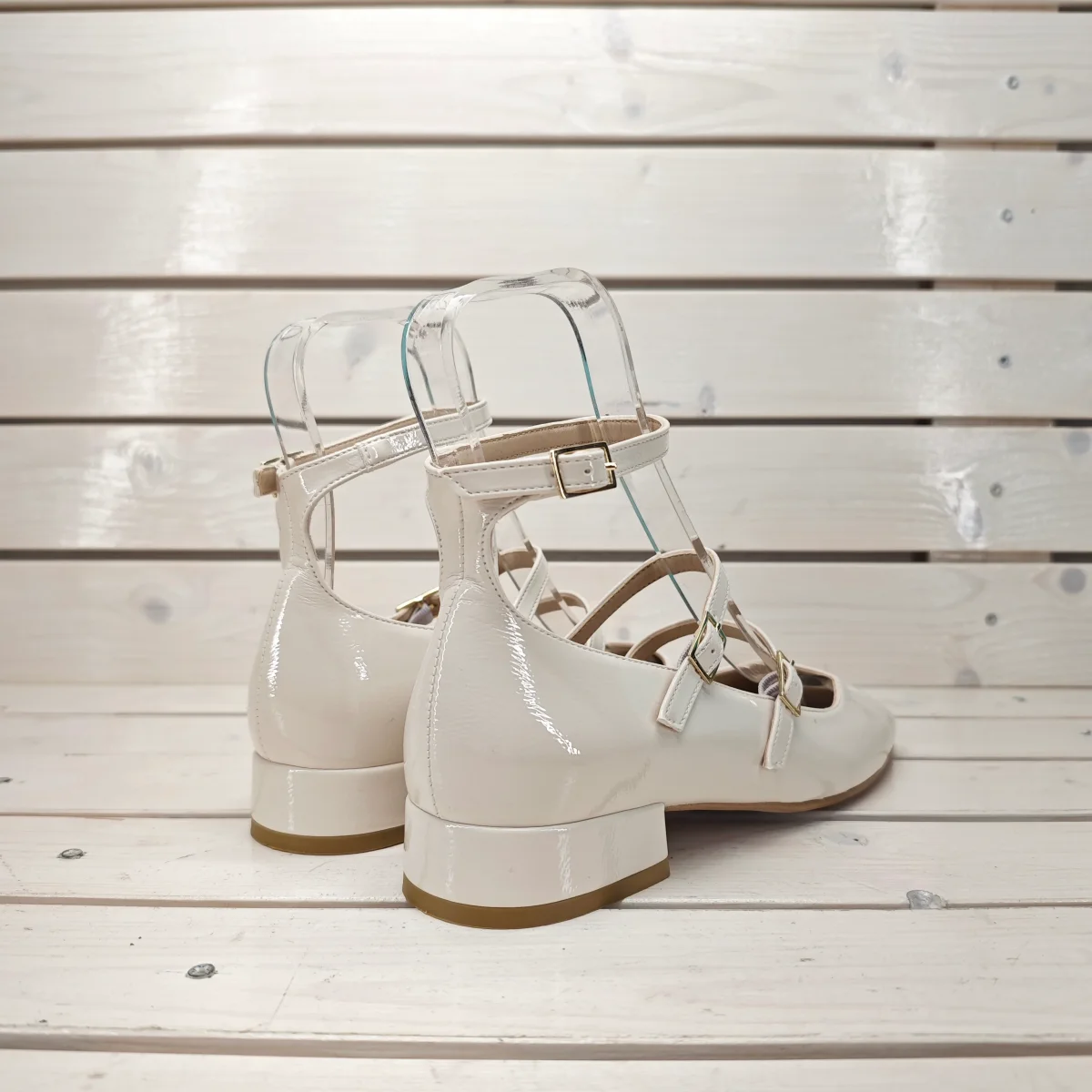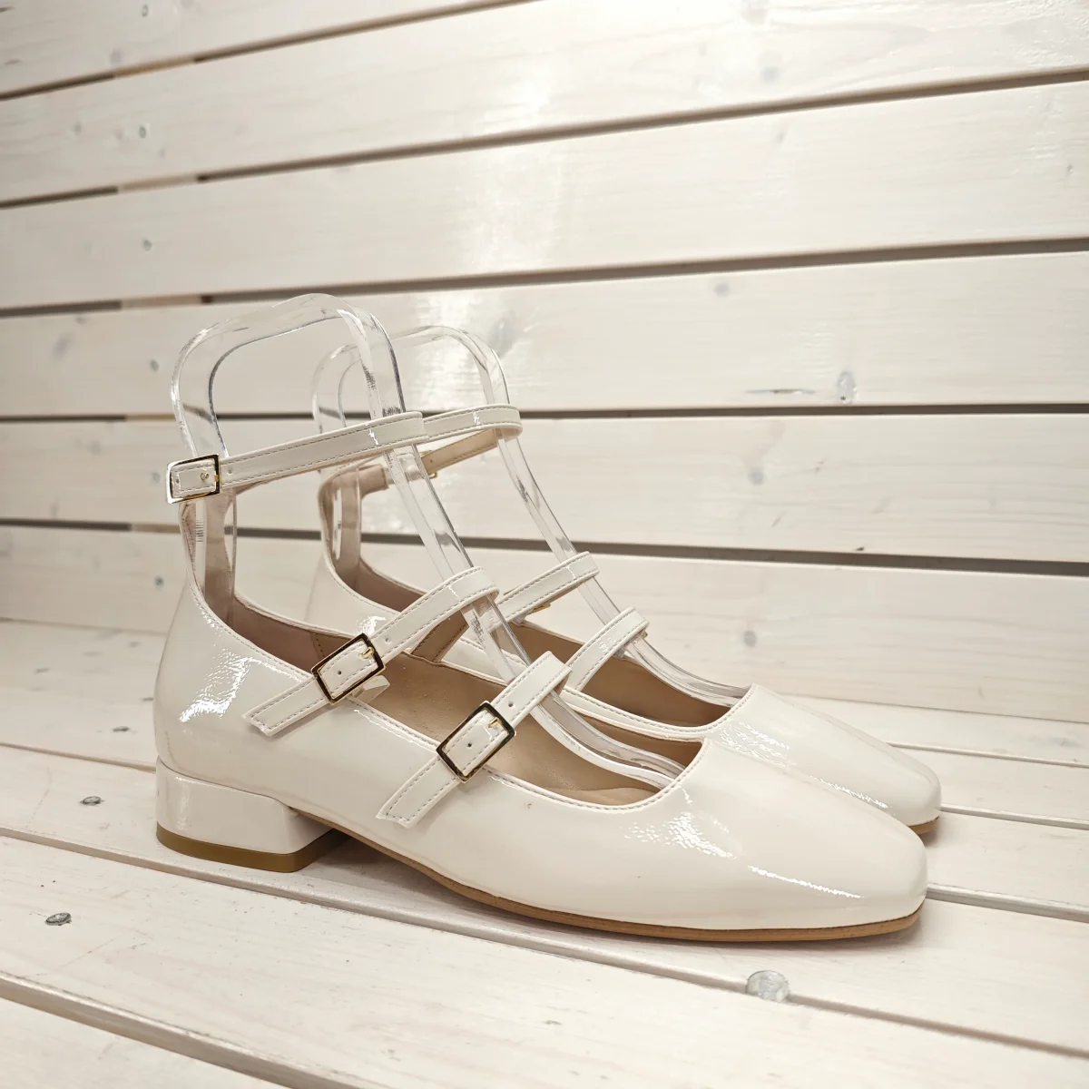 Decollètè in naplak di ecopelle con soletta in pelle e cinturino a T regolabile