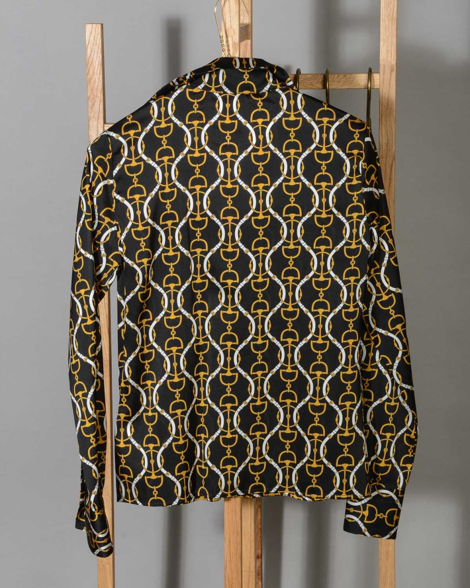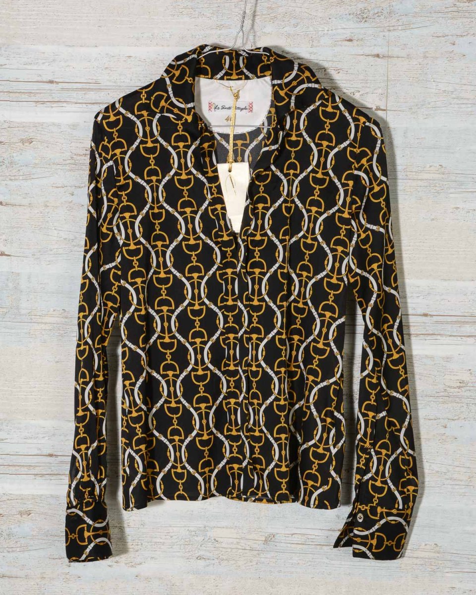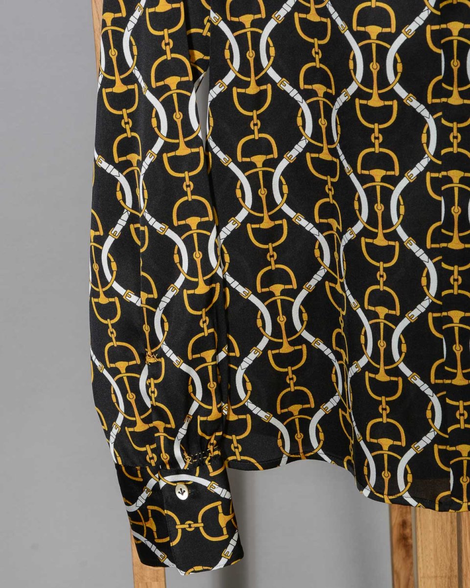 Camicia-blusa donna in seta Le Sarte Pettegole fantasia nero giallo