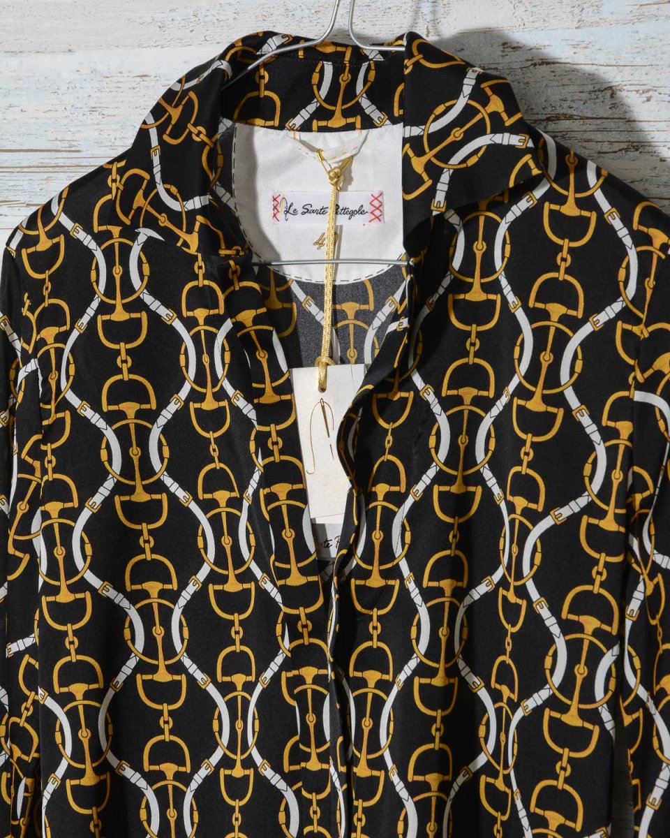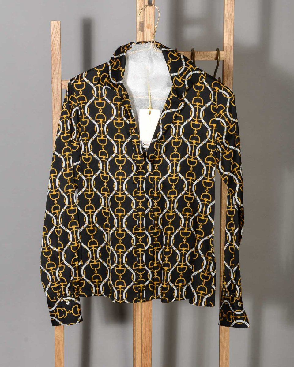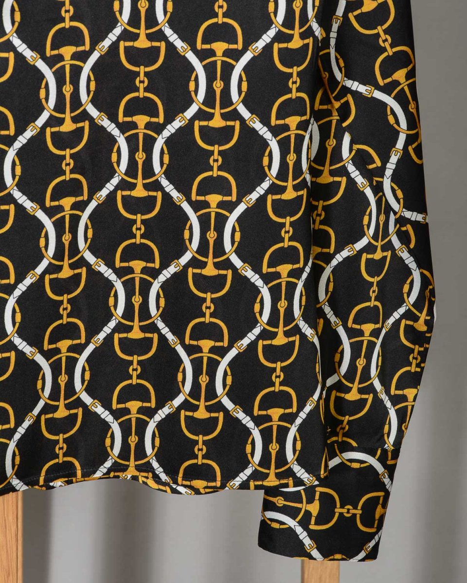 Camicia-blusa donna in seta Le Sarte Pettegole fantasia nero giallo