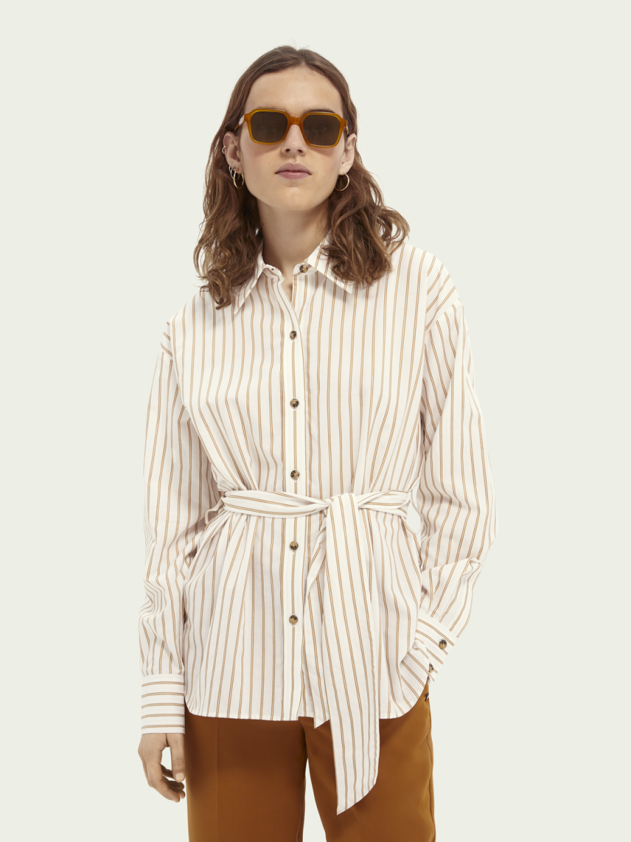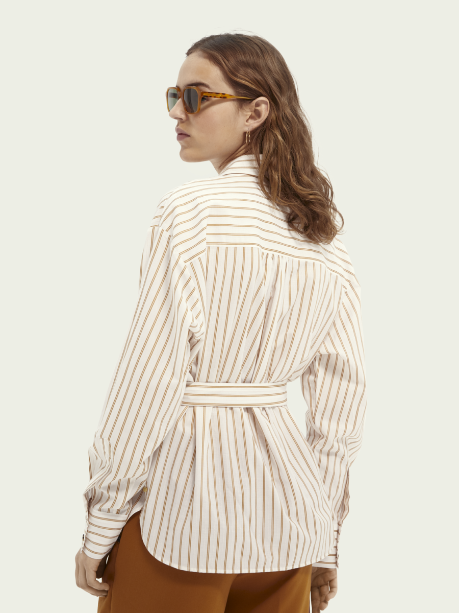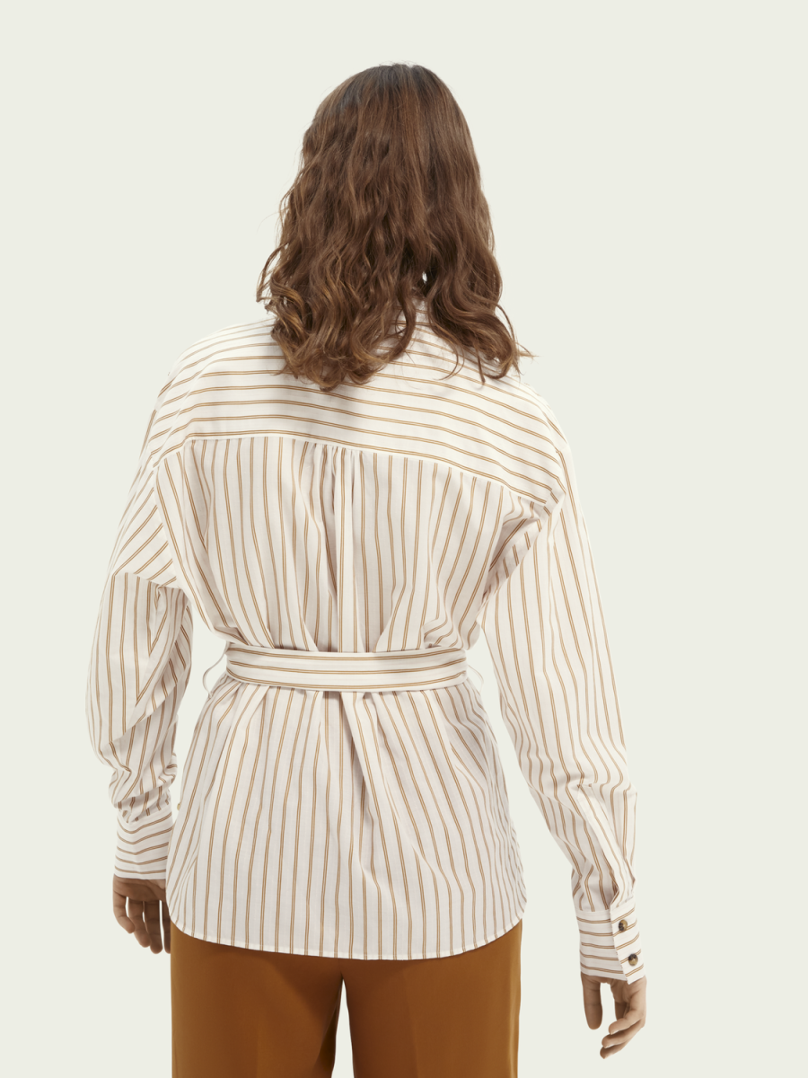 Camicia in cotone e cupro a righe con cintura