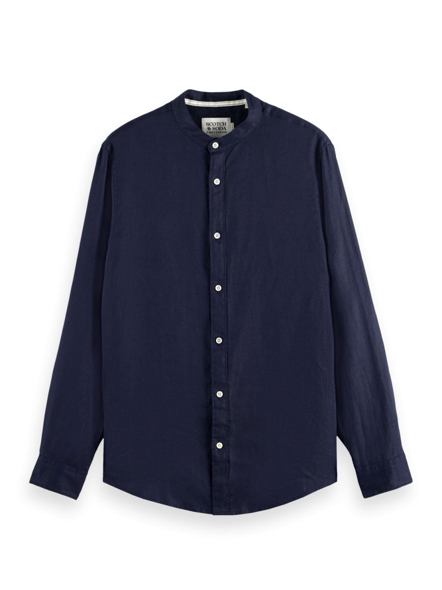 Camicia in lino a maniche lunghe con collo coreano