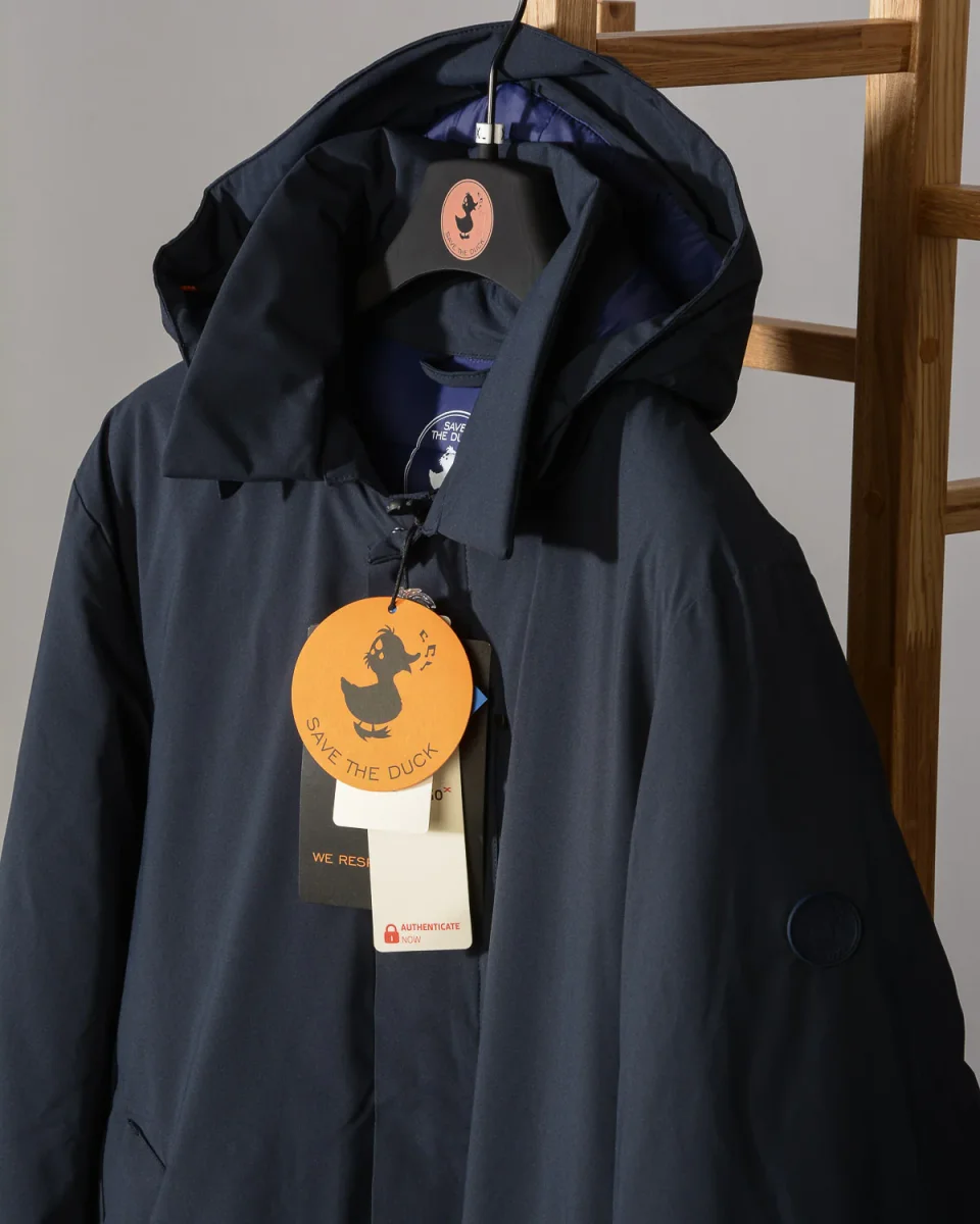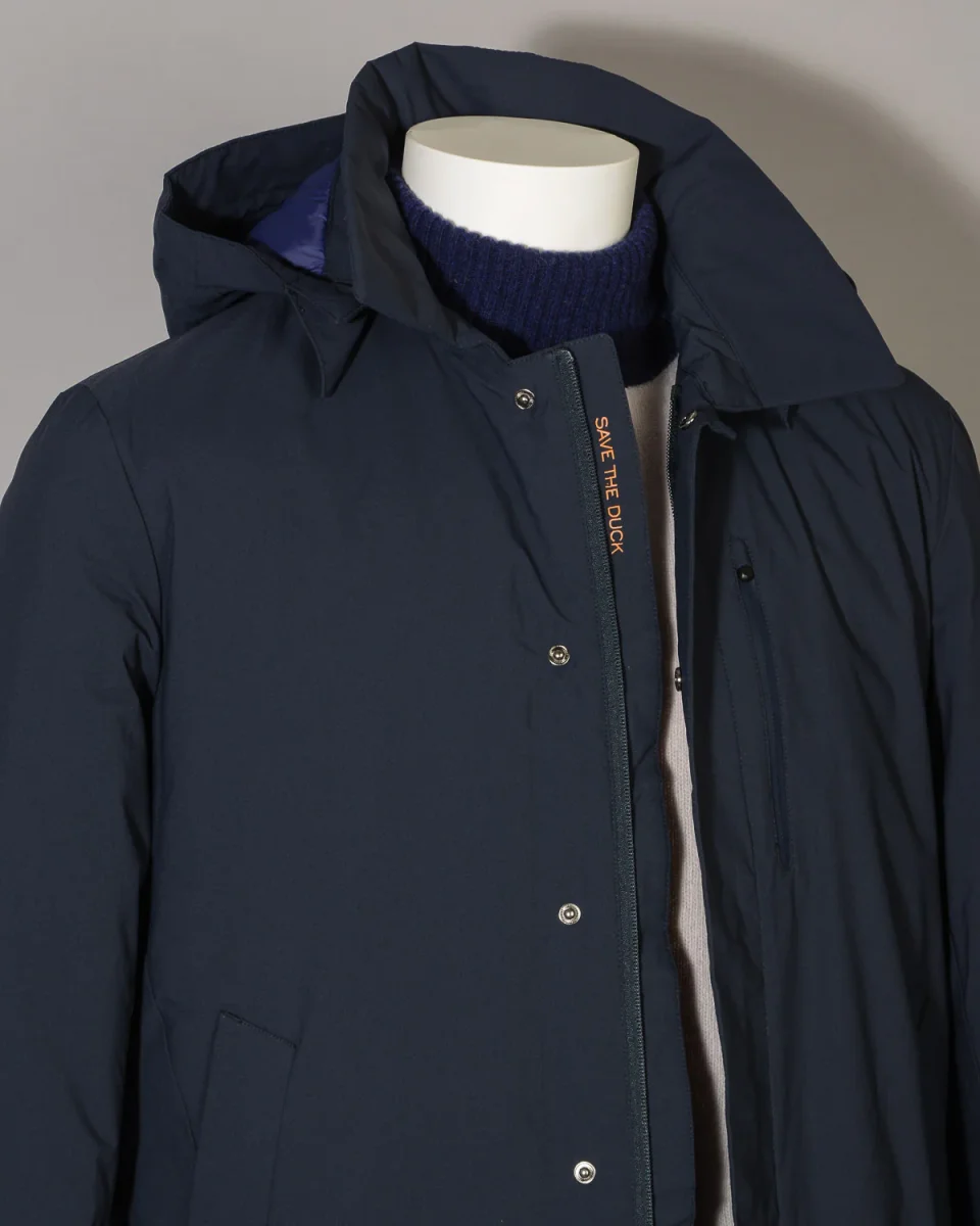 Cappotto uomo blu scuro Save The Duck D4202M MATT9 00146 Blue Black liscio esternamente con cappuccio