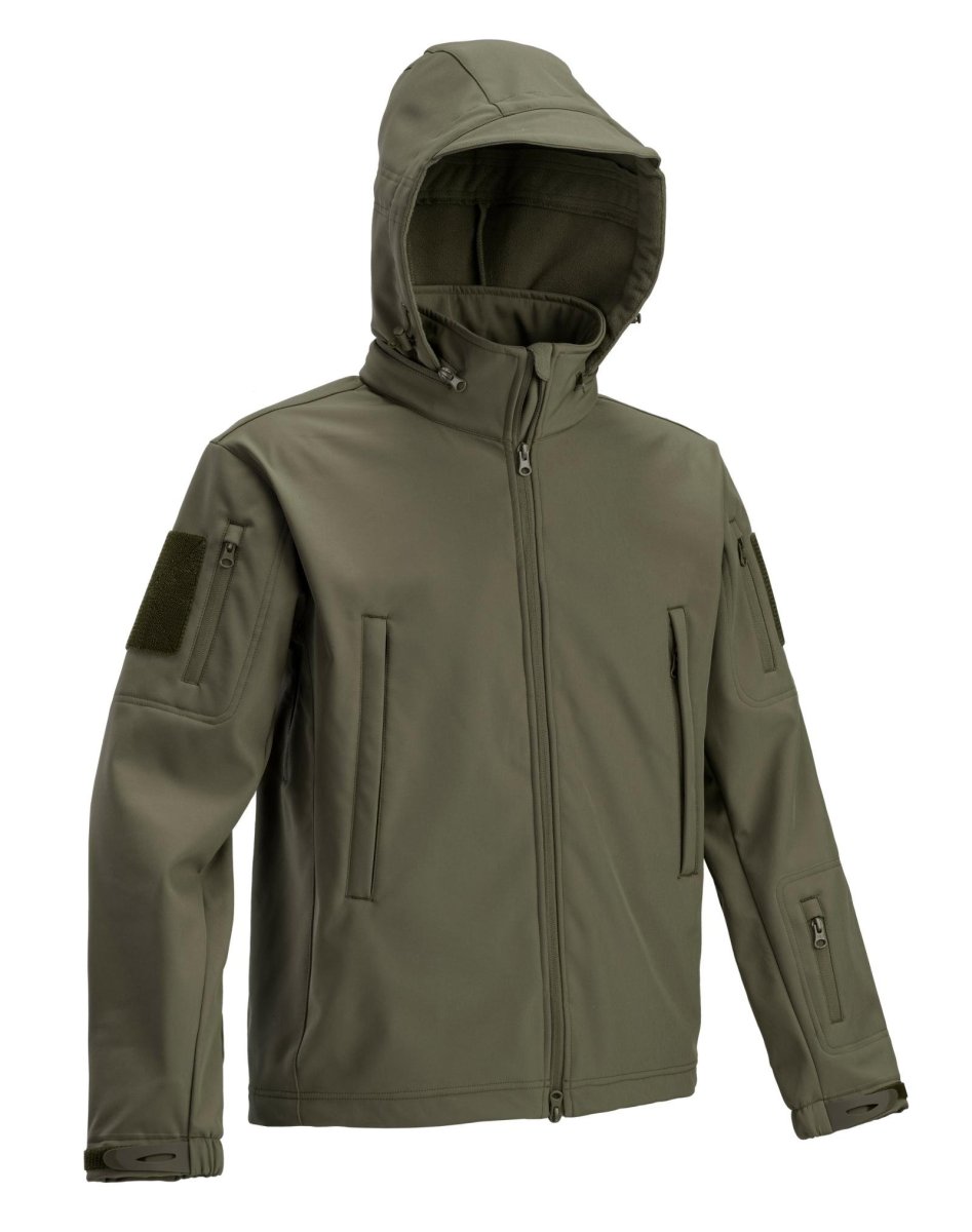 Giacca tattica softshell con cappuccio staccabile. Strato esterno repellente allacqua, antivento e traspirante prodotto in 92% poliestere e 8% spandex; Strato interno in 100% poliestere; Cappuccio avvolgibile e staccabile con coulisse; Chiusura frontale con doppia zip e dotata di patta copri gola interna. 2 tasche con chiusura a zip sulle maniche allaltezza delle spalle con velcri per fissaggio di sistemi riconoscimento; 2 tasche interne con chiusura a zip; 2 tasche pettorali di grandi dimensioni con chiusura a zip e asole rinforzate interne per il passaggio di auricolari audio; 1 tasca con chiusura a zip sulla manica sinistra all’altezza dell’avambraccio; 1 tasca posteriore con doppia cerniera; Aperture di ventilazione sotto le maniche; Avambracci rinforzati; Straps di chiusura regolabile ai polsi; Coulisse sul vita. Peso: 1.06 Kg