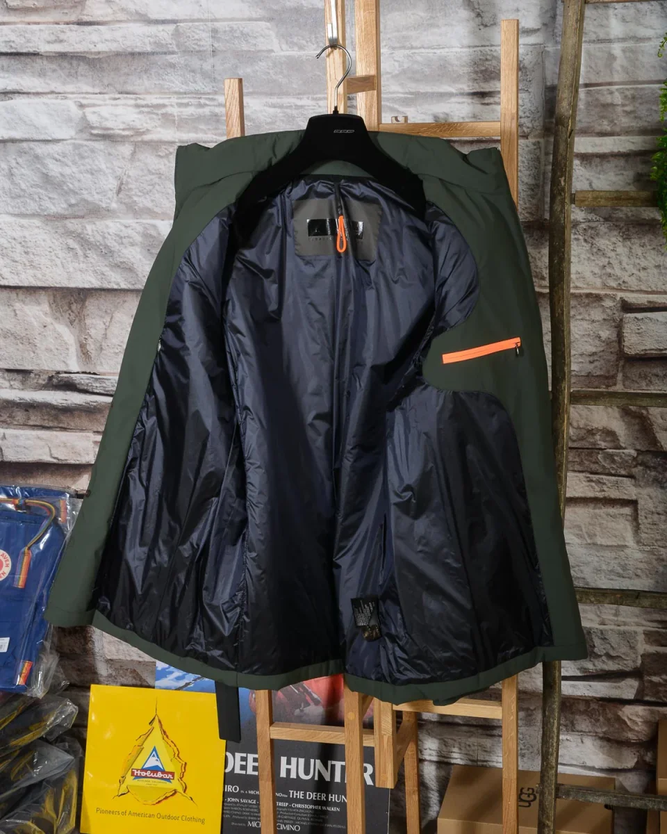 Giacca da uomo realizzata in tessuto Lycra in poliammide super opaco da 165 gsm (80% poliammide, 20% elastan) con trattamento idrorepellente (WR). All’interno, il tessuto 20 denari assicura calore e facilità di movimento. Chiusura con cerniera e bottoni a scomparsa. Bottoni sul collo. 4 Tasche applicate sul davanti con pattina. Cappuccio a scomparsa con zip sul colletto. Polsini con bottone. Composizione esterno: 80% poliammide, 20% elastan. Fodera 100% poliammide. Imbottitura 100% poliestere.