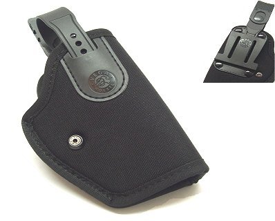 Fondina da cintura in cordura nera, sgancio rapido regolabile rinforzato nella parte di pressione, passante in poliuretano. Disponibile in colore nero. Prodotto per i seguenti modelli: beretta 90two, 98A1, px4 storm, 92, 98, 84, 8000, 9000, beretta apx, bersa, caracal c, f, revolver da 2,5 a 6 pollici, glock 17, 19, 20, 21, 22, 23, 25, 26, 27, 28, 29, 30, 31, 32, 36, 37, 38, sig sauer p220, 225, 226, pro 2022, walther ppq, p99, p99q. Le asole del passante sono per cinturoni da 4 a 5 cm. Prodotto in Italia.
