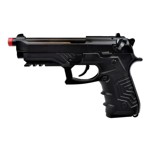 PISTOLA A GAS SCARRELLANTE FULL METAL CON GRIP IN POLIMERO CARICATORE A GAS DA 25 COLPI SLITTA SOTTO CANNA SICURA, SEMI E FULL AUTOMATICA HOP UP REGOLABILE LUNGHEZZA 225MM PESO 1080G INCLUSA VALIGETTA RIGIDA PER TRASPORTO