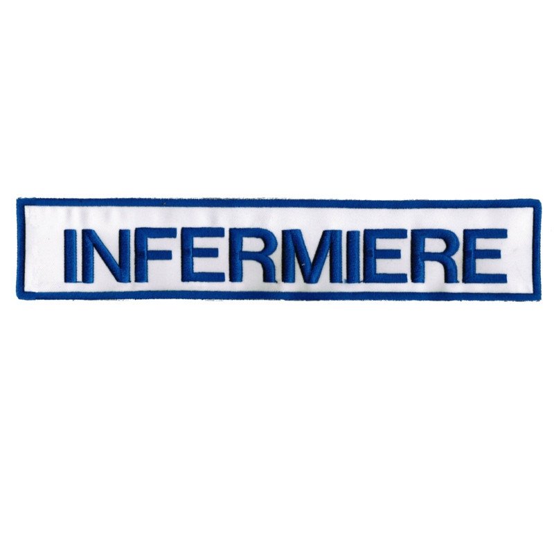 Listello ricamato bianco azzurro Infermiere. Misure: 10X2,5 – – 25X5. Disponibile con o senza velcro.