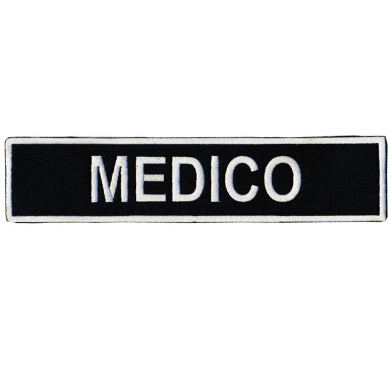 Listello ricamato bianco blu Medico. Misure: 10X2,5 – 12X3 – 25X5. Disponibile con o senza velcro.