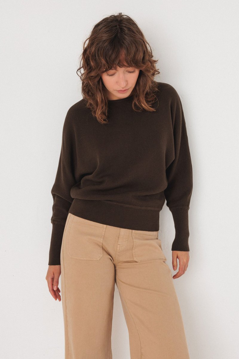 Maglia rasata con scollo rotondo e maniche a pipistrello