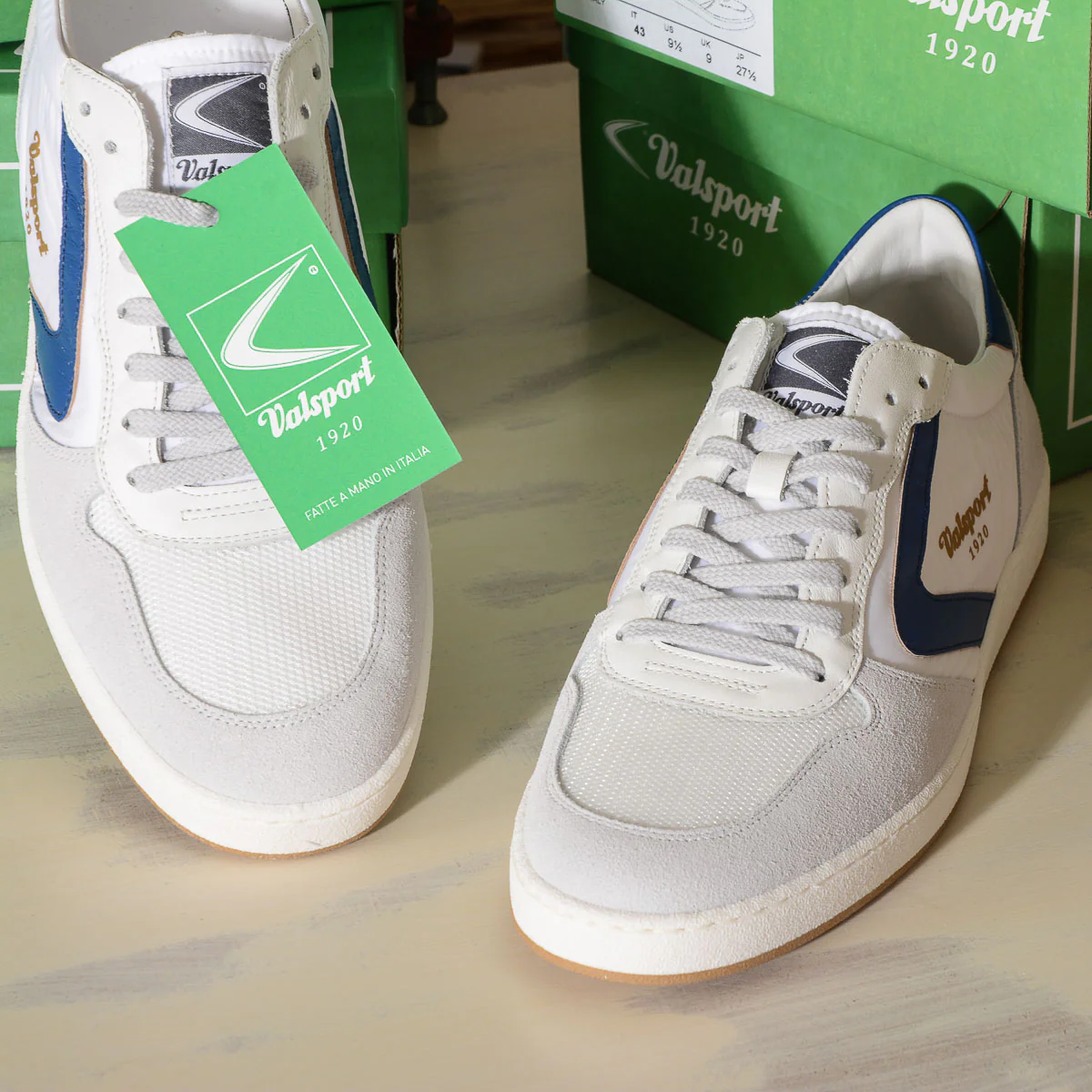New Davis Valsport 1920 Sneakers uomo in pelle e NYLON MESH bianco blue royal