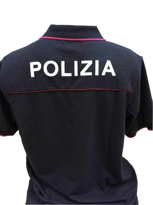 Polo m/c Polizia di Stato completa di stemmi e grado La polo Polizia di Stato,completa di ricami, alamari e in ?i?’ velcri, tessuto traspirante. – Tasca porta penne sulla spalla sx – Perfilo cremisi su colletto, manica e sulla schiena – Velcro porta grado sul petto (con grado in omaggio) – Velcro la sx per scudetto Italia o scudetto di reparto – Scritta ricamata POLIZIA colore bianco sul retro – Listello Patch POLIZIA lato sx applicato diretto sulla polo