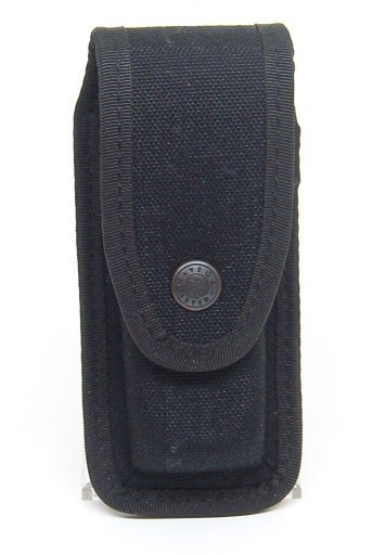 Porta caricatore in cordura per caricatori bifilari, in cordura balistica sagomata, con passante a nastro regolabile a strip. Lunghezza 14 cm, larghezza 6,5 cm. Colori disponibili: bianco o nero. Prodotto in Italia.