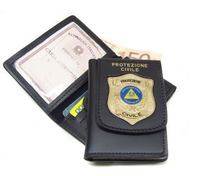 Dimensioni da chiuso: larghezza 9 cm, altezza 13 cm. Con fregio in metallo. L acquisto non istituzionale di questo articolo è consentito esclusivamente a coloro che dimostrino la propria Titolare appartenenza a quel Istituto di vigilanza , Corpo di Polizia, Ente, Ministero e Associazione che rappresenta il distintivo contenuto in questo prodotto e che lo stesso acquirente ACCONSENTA al venditore autorizzato ai sensi dell ex art. 28 del t.u.l.p.s. , di registrare i propri dati personali sull apposito registro vidimato dalle autorità competenti così come previsto dalle leggi vigenti in materia di produzione e vendita di Divise ed Uniformi. Ogni abuso o cessione impropria di questo prodotto è considerato reato. Prodotto in Italia.
