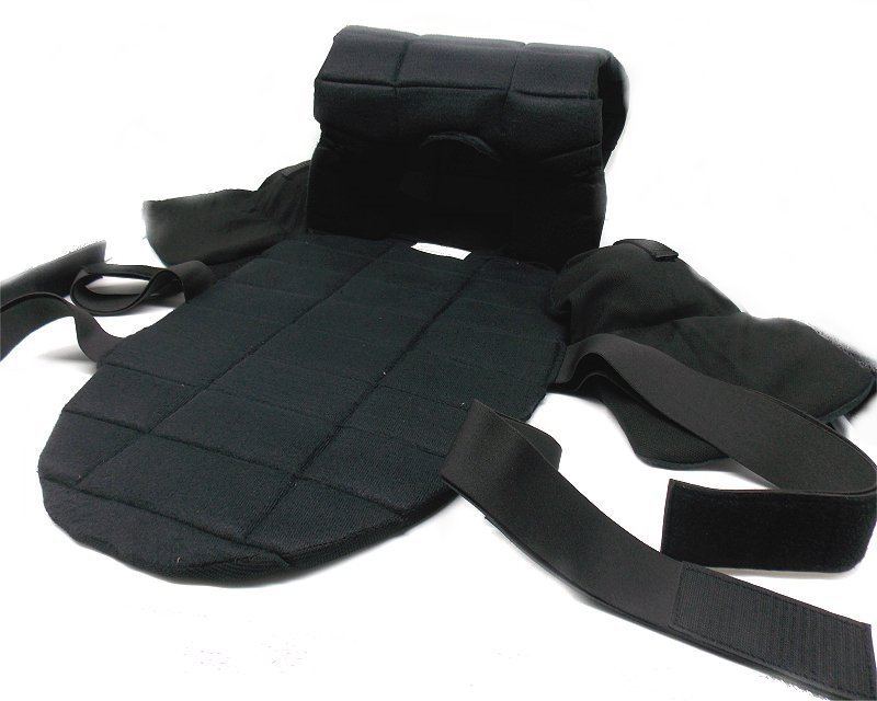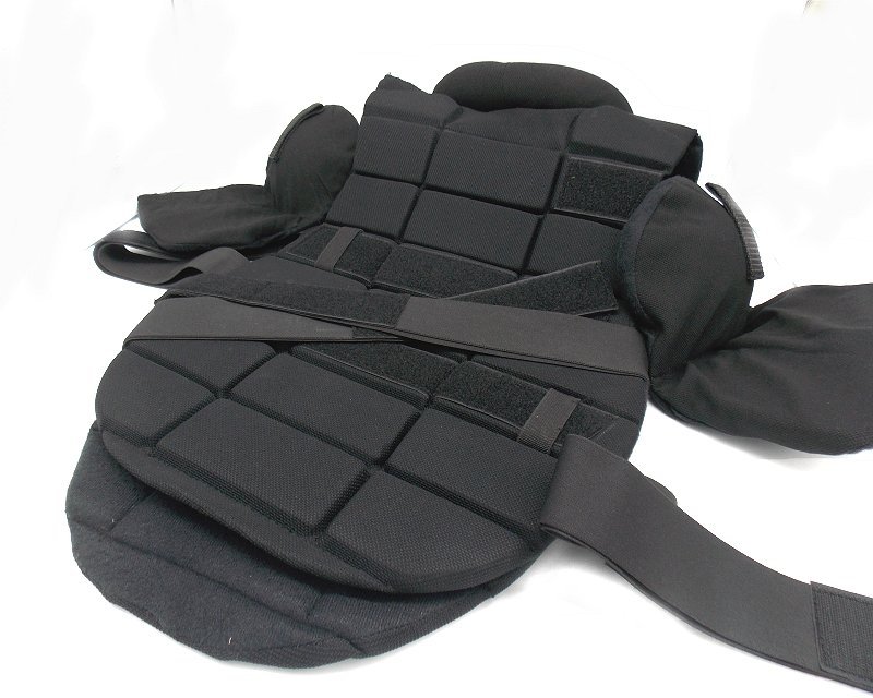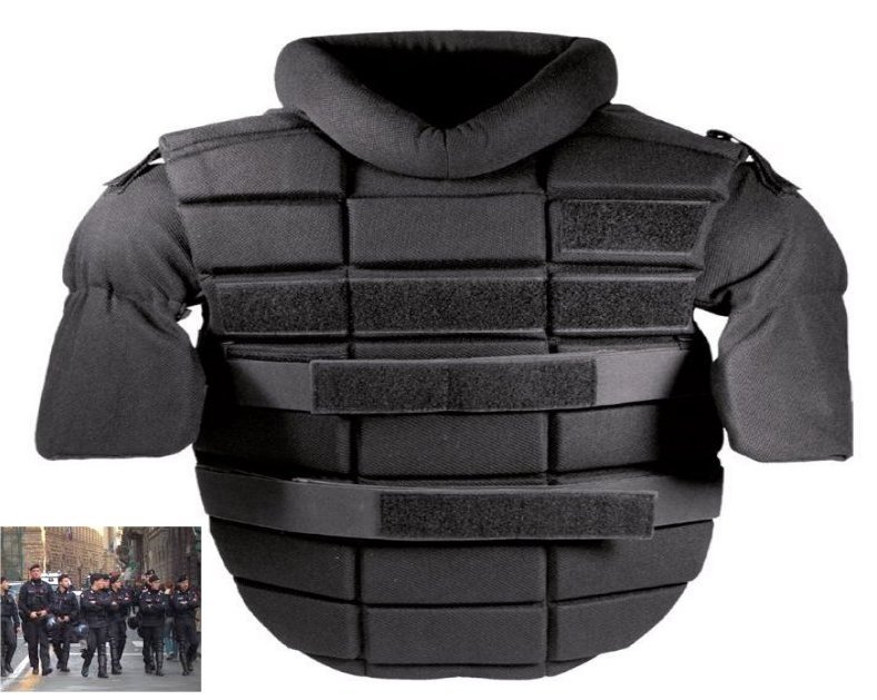 Rivestimento in materiale ad alta resistenza al calore ed all’usura. Imbottitura interna antiurto e appositamente sagomata per disperdere l’energia cinetica provocata dall’impatto di bastoni ed altri oggetti contudenti. Facilità di movimento grazie al disegno ergonomico.. Protezione delle spalle con inserti in plastica antiurto. Regolazione tramite elastico e velcro per un maggiore comfort e regolabilità. Non è un prodotto antiproiettile disponibile in taglia unica. Colore nero.