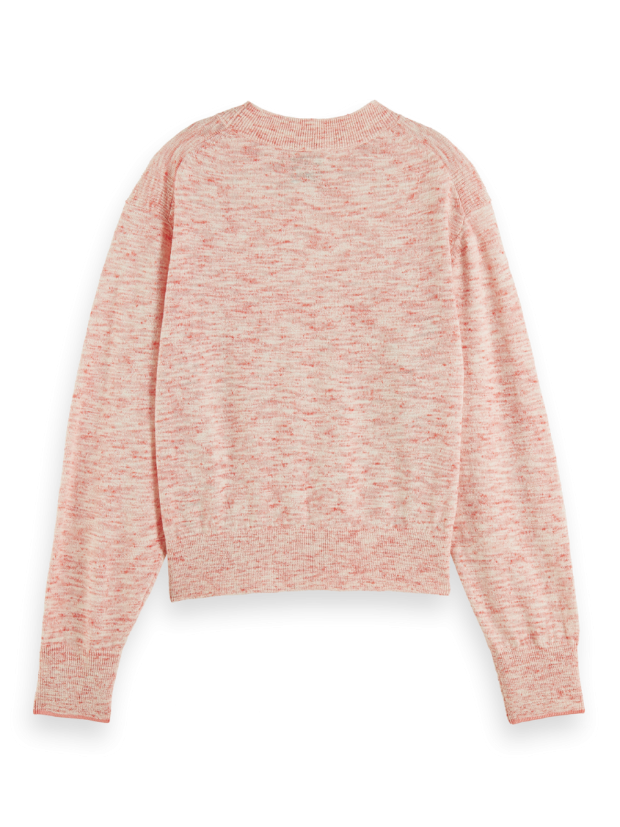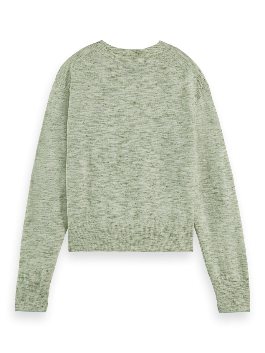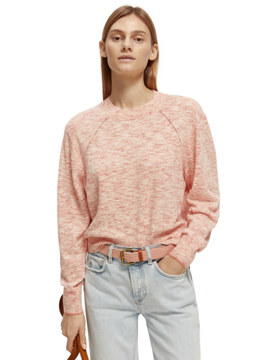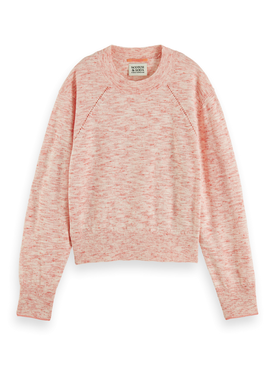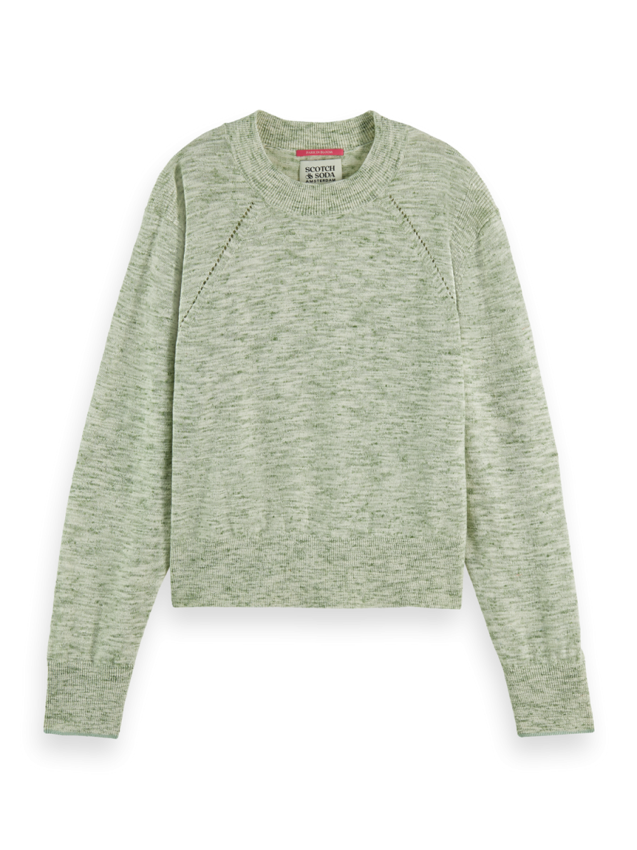 Pullover girocollo con dettaglio Pointelle in Lino Cotone