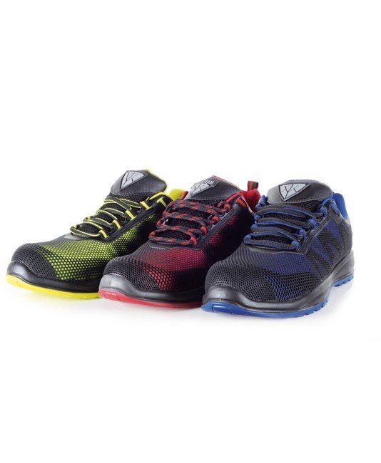 Scarpa con lacci combinati. Soletta PU bidensità combinata in due colori. Punta in composito anti impatto e soletta tessile antiperforazione. Propietà antistatiche. Assorbimento dell’energia nella zona del tacco. Resistente agli idrocarburi, alla perforazione ed allo scivolamento sulle piastrelle.