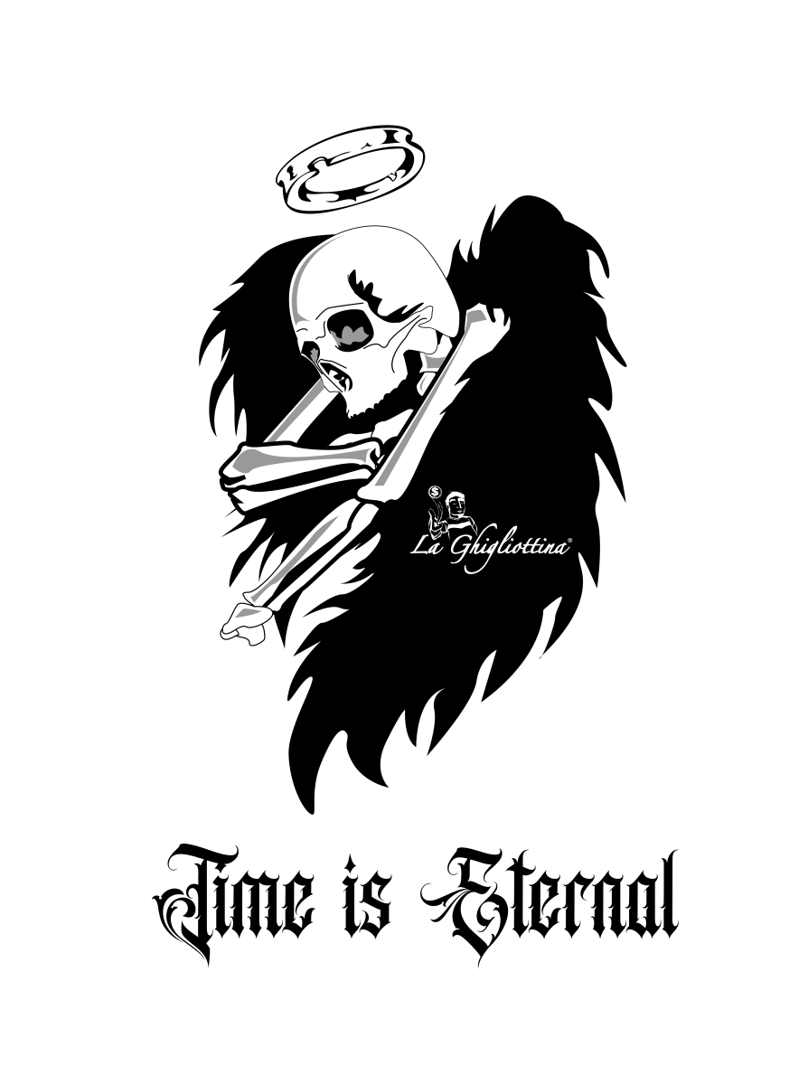 T-Shirt “La Ghigliottina” Time is Eternal White, maglietta 100% cotone.