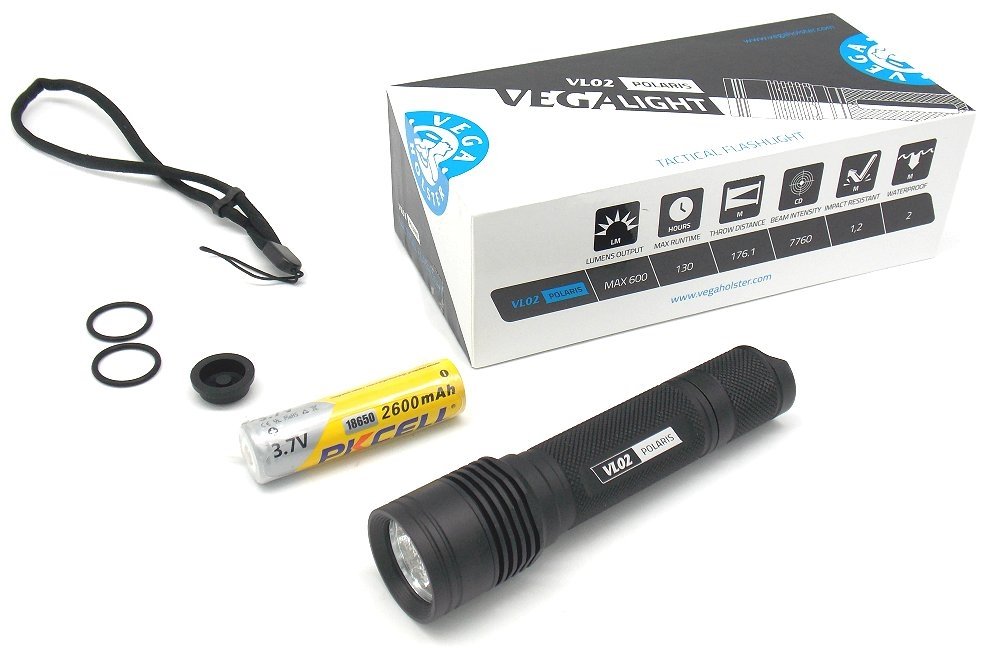 Torcia in alluminio. Tempo di utIlizzo massimo 130 ore. Funzionamento con una batteria di 2600 mAh in dotazione. Resistente all’acqua ed agli urti. Illumina fino a 600 metri. Lunghezza 124 cm. Diametro 3 cm.. In dotazione laccetto per il trasporto. Si consiglia l’acquisto del cavetto remoto codice articolo 80312376