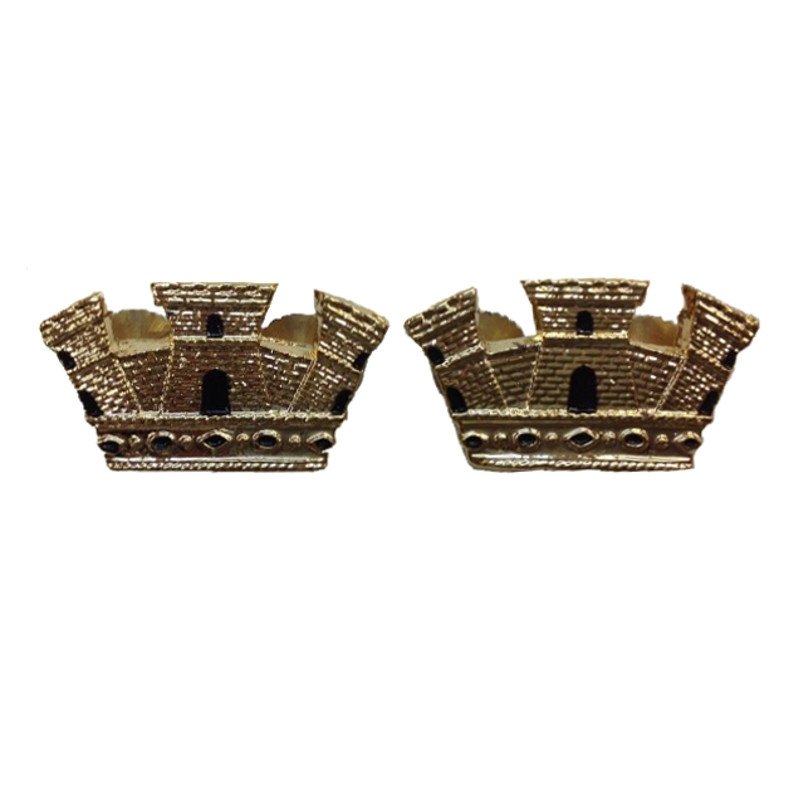 Torre dorata con 2 viti in metallo e dadi torniti. Misure altezza max mm 20 e larghezza max mm 34.