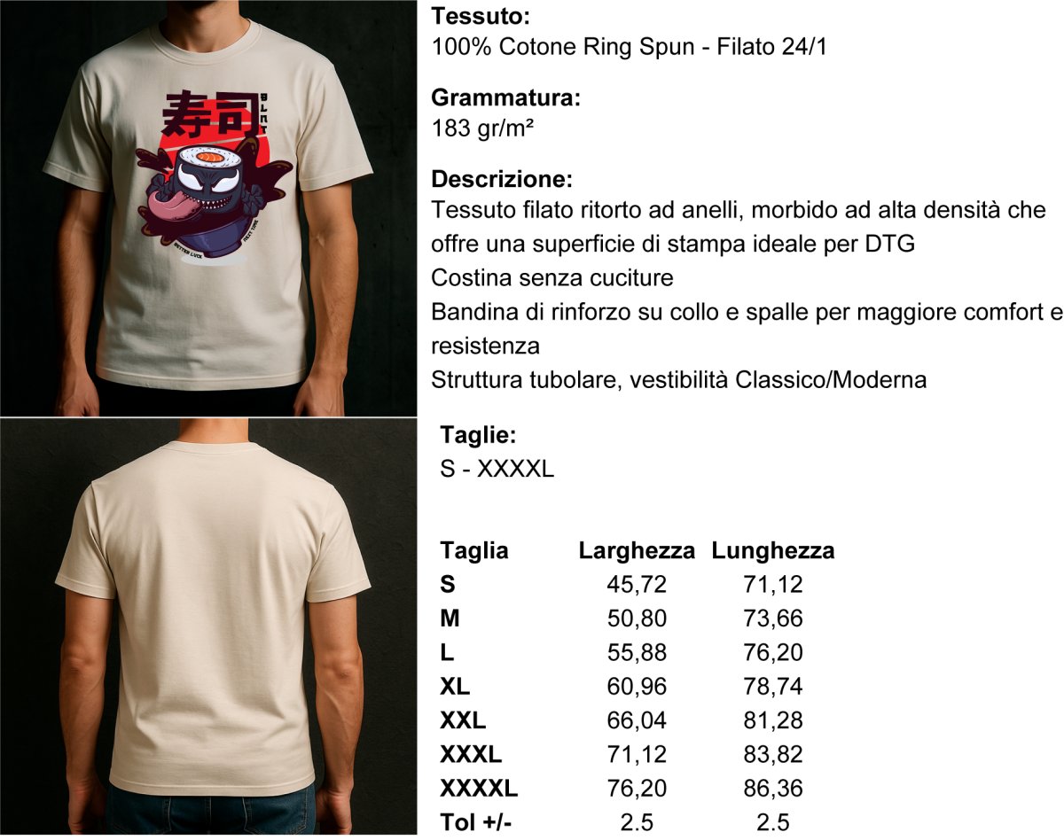Serie di magliette con grafica ispirata alla mitica zuppa e allo sushi Giapponese. 4 grafiche che ripercorrono il meglio della cucina nipponica, stampate ad altissima qualità su t-shirt realizzate 100% in cotone.