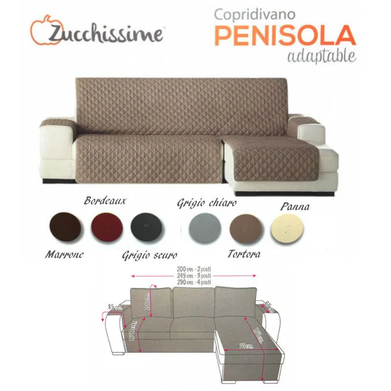 Copridivano Zucchissime Con Penisola3 posti utilizzabile sia per divani con penisola destra che sinistra. Disponibile in vari colori.